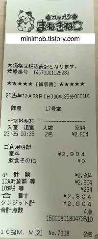 연말연시 추가요금을 적용받아, 2명이 1시간에 2,904엔.